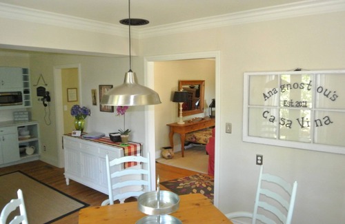Designer farmhouse on private vineyard. Includes 6 bikes, fire pit, bocce ball court, and even bathrobes and slippers for your comfort. The perfect wine country getaway! Located in the heart of premier Sonoma Valley surrounded by rolling hills and vineyards as far as you can see. Casa Vina is a 3 bedroom, 2 bath newly updated vintage farmhouse nestled on an old country road only a few minutes from the historic downtown Sonoma Plaza with restaurants, museums, galleries, shops, parks, entertainment and historic sites. Immaculate and sanitized, our home is fully furnished w/ Pottery Barn and Restoration Hardware decor with a cool vintage flair. Check out our sexy 1940's Wedgewood range! Amazing vineyard views and outdoor relaxation areas throughout the property. Relax around the fire pit or enjoy a game of bocce ball, crochet or horse shoes. We're near Napa, Glen Ellen, Kenwood, St. Helena and the Carneros Valley with over 450 wineries in Sonoma County to choose from! Just 15 minutes from Sonoma raceway! Plenty to do here in Sonoma - take a self guided bike tour to the nearby wineries on our cruiser bikes (Maps included). End a perfect day in wine country by slipping into our crisp and cozy white linens beneath fluffy comforters for a great night's sleep. Enjoy your morning coffee in white robes, overlooking gorgeous Pinot Noir and Merlot vineyards. Sonoma truly is one of the most extraordinary places on earth.