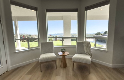Gorgeous Farmhouse with breathtaking views. 5 acres perched on top of the hillside for the most beautiful sunsets and views of the stars. The well kept grounds offer the perfect photo ops with new vineyard and orchards. Plenty to do with a new pickleball court, pool table, fire pit and jacuzzi. Close to wine tasting, golfing, shopping and restaurants. Our newly renovated farmhouse comes equipped with everything you need for a weekend of entertainment and fun.