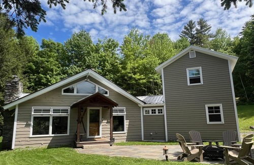 Escape to our vintage chalet in scenic Stowe! Nestled amidst nature, our cozy retreat offers three bedrooms, two baths, a loft with 2 twin beds and a backyard frequented by wild turkeys. Despite its secluded feel, we're just minutes from town and the slopes. An outdoor fire pit sets the mood for cozy evenings under the stars. Music lovers will appreciate the vintage vinyl collection. With a fully equipped kitchen and plush beds, this chalet is the perfect blend of comfort and nostalgia for your Stowe adventure.