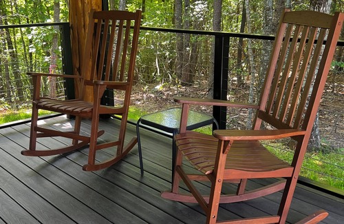 The master suite has a beautiful walk-in shower and provides a great place to unwind and relax after a visit to the vineyard or a hike on one of the many trails nearby at Stone Mtn park. The spacious open concept living. kitchenette provides a beautiful backdrop for your stay. You can enjoy a glass of wine or an early morning cup of coffee as you enjoy the tranquility of nature on your private porch.