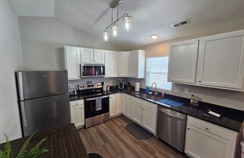A blend of comfort and style greets you as soon as you enter our newly built ranch home. We have worked hard to create a home away from home feeling for you and your family. The open-concept floor design allows room for many guests. Everyone in your group will have room to mingle and relax.