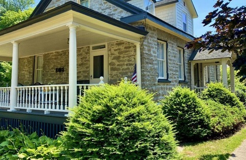 Feel at home as soon as you step into this cozy historic stone house on a quiet street in the quaint village of Waddington. Steps away from the St. Lawrence River and walking trails, with a coffee shop and other stores close by. Only 25 minutes from Clarkson University, St. Lawrence University and SUNY Canton. Easy commute to hospitals, New York Power Authority and Alcoa. If you are working from home, we have all the space you need with an office, internet, printer, and deskspace! Our home has all the modern features including an upgraded kitchen, USB connections throughout the house, ROKU tvs for streaming, large laundry appliances, a garage for parking and an outdoor patio and deck. A first-floor master has two large closets, in-floor heat, an attached bathroom, and lots of windows overlooking the yard. Two bedrooms upstairs accommodate up to four people and share a large bathroom with tub/shower. A third bathroom is conveniently located downstairs for guests. The dining room can seat up to 8 people and the entry area has a local history wall and a piano. The cozy living room has plenty of seating with sofa, chairs, electric recliner, fireplace with electric heater logs, and large ROKU TV. Relax and enjoy this gorgeous piece of Waddington history!