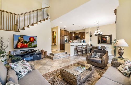 Newly remodeled 2 bedroom, 2 1/2 bath Waikoloa Colony Villas townhouse located off the 9th hole of the Waikoloa Beach Nine. Discounted GOLD GOLF KINGS' CLUB MEMBERSHIP. Book this villa and you will be able to set up your tee time and golf at discounted rates.