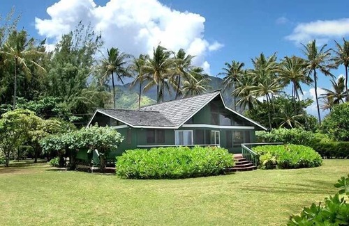 Lush, tropical foliage and spacious grounds surround this delightful, beachfront home. It exemplifies the tranquillity for which Kauai's north shore has long been valued. Vaulted ceilings add a spacious feel to the large living area which offers fabulous ocean views. Amid gentle breezes, the lanai is a wonderful place to relax and enjoy nature's impressive panorama and spectacular sunsets.