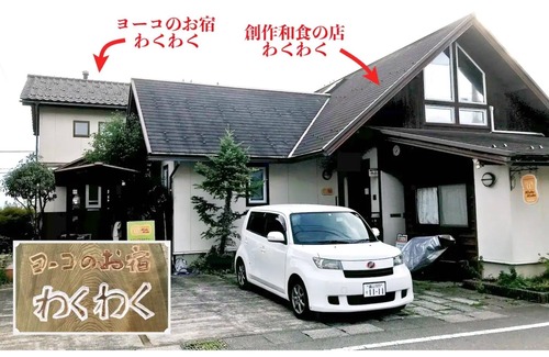 Yoko no Oyado Wakuwaku is a separate inn that is limited to one group per day adjacent to the original homecooking restaurant Wakuwaku There is a private entrance The first floor is a living space with a dining table and the second floor is a bedroom From the window you can see a spacious rural landscape and the Northern Alps Tateyama mountain range in the distance