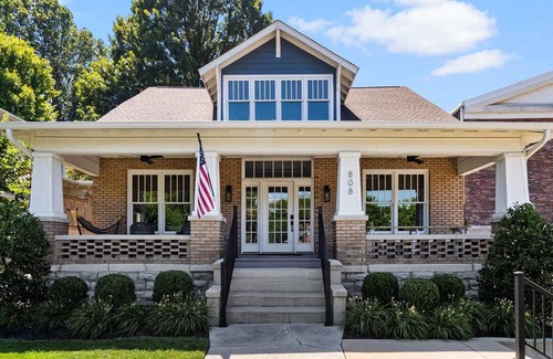 This beautiful home has it all with the master suite on main level, gorgeous hardwoods and a screened-in back porch with a wood burning fireplace. Enjoy the open layout of this historic home where you and your guests can lounge on the comfy couch, hang out in the kitchen and eat at the dining table without missing a beat! Not only does the fourth bedroom have two large Lovesacs that double as comfortable sleeping areas, every bedroom has a connected bathroom for added privacy! The kitchen is fully modernized and stocked with essential tools for cooking, and there are two main floor bedrooms each with a King bed. Upstairs bedrooms include a queen bed and Lovsacs that are perfect for kids or teens! Four full bathrooms make this the perfect home for couples traveling together, families with older kids, or even business travelers.