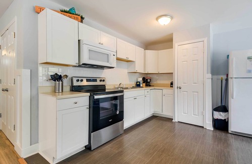 KITCHEN: Stove/oven, refrigerator, cooking basics, dishware/flatware, coffee maker, microwave