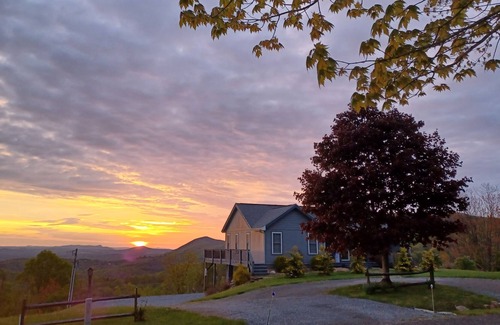 Oh, the ever-changing view! Peaceful mountain home overlooking Sparta and into Virginia. See the sun rise, moon rise and dramatic sunset coloring of the mountain skies.