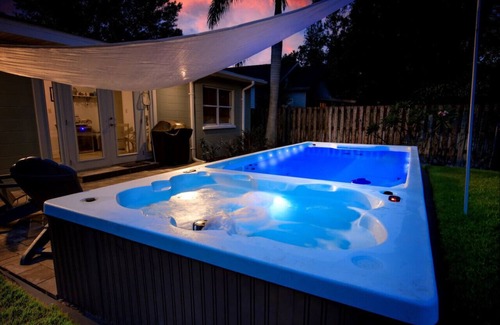 Welcome to the Boho Bungalow! Our newly transformed home has so much to offer. Open our front door and take a step into the comfort and relaxation that the Boho style elicits. After a long trip to get here, curl up on our comfy couches and wrap yourself with one of our many soft throws. Have a cup of coffee or a refreshing beverage on our front porch. Take a swim in our new pool/swim spa combo, or just sit out on the beautiful back deck and enjoy the warm sunshine. 3 bedrooms 2 full bathrooms.