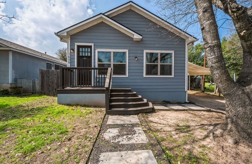 This cottage is located in a quiet neighborhood and is just 2 blocks from the CapMetro train and bus stop making access to the city convenient without a car. The living room is equipped with a projector plus appleTV and a sofa that folds open into a queen size bed, great for movie nights or extra guests. The kitchen is fully equipped with updated appliances including blender, air fryer, all cooking and dining essentials, and starter coffee/snacks. Bedrooms 1 and 2 both have memory foam mattresses and blackout curtains for great sleep on any schedule. The 3rd bedroom is set up as a dedicated office with a sofa that can double as a sleeping arrangement for one guest. The small yard is fully enclosed with a shaded patio for year round comfort.