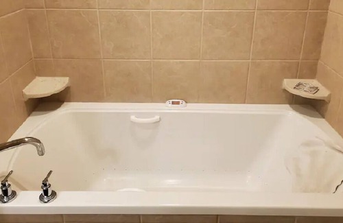 There are two bedrooms down stairs one with a full size bed and another with two full beds. The full bath room that is downstairs has a jacuzzi tub for your relaxation. Upstairs is an additional bedroom with a queen size bed and a 3/4 bathroom with a gorgeous tiled shower.