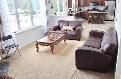 This charming home in Wurtsboro boasts 3 inviting bedrooms. Each bedroom is thoughtfully furnished the 1st BR has a queen bed and a master bathroom, the 2nd & 3rd BRs offer a double bed each, ensuring a comfortable stay for all guests. (There are 3 air mattresses available to allow for beds single use preference).