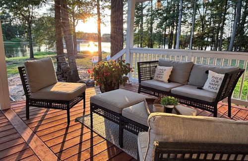 The perfect LKG sunset view! Welcome to your peaceful escape on Lake Gaston. This cozy 2-bedroom, 1-bath waterfront cottage on a flat lot (no steps!) offers the perfect setting for a relaxing getaway. Whether you’re sipping your morning coffee on the deck, casting a line from the private boat house, or kayaking at sunset, you’ll love every moment by the water.