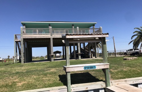 Beach fest is a beautiful property on the Intracoastal Waterway overlooking the Gulf of Mexico featuring three bedrooms and two full baths. (1 king, 1 queen, and 2 sets of twin over twin bunk beds) Comfortably sleeps 8, with sofas could accommodate 10. Fully stocked kitchen boasts ample space and culinary utensils to prepare your catch of the day meals!! Bring your boat, your fishing gear, your family and friends to this amazing Sargent coastal front property. Easy access to public boat ramp across the Intracoastal. Relax and enjoy the breathtaking porch view. Large partially shaded deck is great for sipping coffee in the morning and enjoying the sunrise or eating dinner and taking in a stunning sunset. Property is complete with your own private pier and 1000 watt green fishing lights!