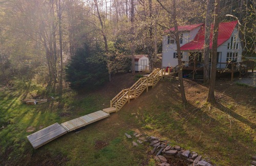 This welcoming modern cottage is located directly on Fontana Lake in the summer and Alarka Creek in the fall, winter, and spring. Pull your boat up to our dock in the summer or fish in the trout-stocked creek steps outside your door when the lake is down. Let the sounds of the flowing creek wash away all of your life's stress or hop in the hot tub for the same effect!