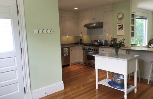 The craftsman style home has a sweeping lawn overlooking the Damariscotta river. Enjoy a glass of wine while sitting on the deck looking at the kaleidoscope sunset sky. The house is bright and airy with a three season screened in porch, living room with wood burning stove, gourmet kitchen and dining room. Four cozy bedrooms upstairs will accommodate up to 7 guests. Two bedrooms have queen beds. One bedroom has a full size bed and the fourth bedroom has a twin bed. The house is in a great location within easy walking distance to the shops and restaurants in charming Damariscotta. It is located on the Pemaquid peninsula within driving distance to local sights such as Pemaquid Lighthouse in New Harbor, Pemaquid beach, Fort William Henry, Round Pond, and Coastal Maine Botanical Garden in Boothbay.