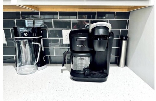 Inside this home you’ll find two spacious bedrooms, each with their own adjoining bathroom. The master bedroom has a queen bed while the second bedroom has a queen bed with a pull-out trundle bed, and a futon couch that transforms into a bed. Each bedroom has a closet, a dresser, and a television.