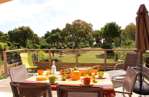 On a property of 2200 m2, with trees of oak, broom and scrub, with scents of lavender, the immortal and erba barona, MARE & LUNA gives you direct access by a private staircase to the beaches sandy Pinarellu. For joggers, the Pinarellu Bay awaits you from the house (2.5Km).