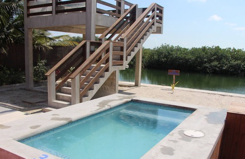 Bring the whole family to this canal home leading to the sea with lots of room for fun. You have a private beach sand yard surround by a 9' fence, your own pool and a towering 20' high platform with a hammock, sink, and counter for entertaining or viewing the sea and sunsets.
