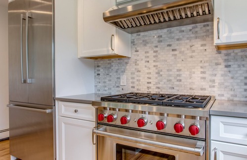 • Newly renovated well-equipped kitchen with eat-in counter space including new gas Wolf 6-burner range and built-in Bosch dishwasher, refrigerator and speed oven.