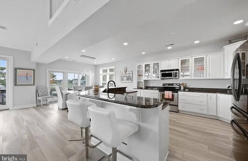This fully renovated home in the gated community of Heron Bay is perfect for your next family gathering in Bethany Beach! Just one mile to the beach, this beautifully decorated home comfortably sleeps 14 and offers three levels of waterfront decking with breathtaking views. The main deck also includes a screened porch, and you can rinse off the sand in the outdoor shower. Paddleboards and kayaks are available for your use at the house - just walk out back and launch onto Salt Pond!