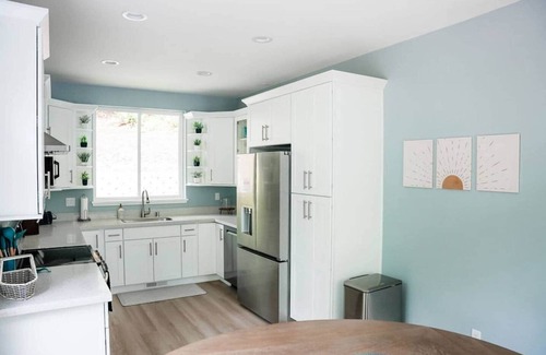 This dog-friendly, spacious lakefront retreat is perfect for families and friends seeking a quiet and fun-filled escape from the city. Just 90 minutes from Seattle and SeaTac International Airport. Amenities Include: Private, swimmable lake access with complimentary kayaks and Hydrobike Dog-friendly Game Room with Gaming System, Foosball, Board Games, DVDs & Books Multiple Outdoor Dining & Lounge Areas Breathtaking Views Year-Round 🏡 The Home Cheerful, family-first lakefront retreat in Bremerton, WA (90 minutes from Seattle) Ideal for families, groups, kids, and pets Spacious layout with warm, thoughtful design 🛏️ Main Home Sleeping Arrangements Primary suite with lake views, walk-in shower, and bidet Upstairs queen bedroom + twin bedroom with a magical hidden playroom nook Game room stocked with foosball, board games, books, and classic DVDs 🍳 Kitchen & Dining Open kitchen with sleek LG appliances and a cozy coffee bar Large dining table seats 8—perfect for shared meals and laughter 🌊 Outdoor & Lakefront Fun Located on a small lake with calm waters for swimming, floating, and kayaking Kayaks provided year-round Nature trails, rock-skipping spots, and space for lakeside games Multiple outdoor seating and dining areas for relaxing or gathering 🐾 Pet-Friendly Pets welcome! Set up a maximum of TWO dogs to enjoy their stay too. 📍 Location Just 90 minutes from Seattle Close enough for easy getaways, far enough to feel like a true escape Guests have access to the top portion of the home, except for any locked closets. The basement area will be closed off for guests who rent this listing. If you would like to rent the basement walk-out suite, please use this URL to rent the full listing: https://airbnb.com/h/woodlandescapeonmissionlake We do not live on the property. Guests can message us before, during, and after their stay via the Airbnb App. We will follow the guest's lead as far as interactions go.