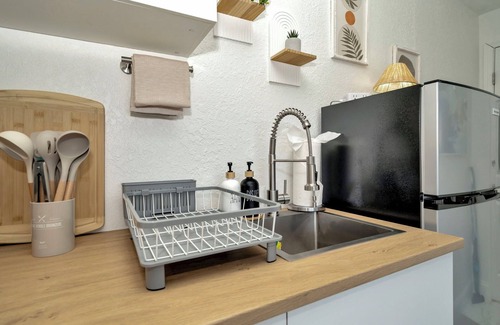 This recently remodeled 1 bed 1 bath studio offers a blend of modern comfort and serene beauty. Located right on the water, you'll have access to the kayaks, dock, boat ramp, and fire pit. It is common to see all kinds of wildlife including manatees, dolphins, and fish. Fully furnished and equipped with a complete kitchen. The only shared space is the backyard.