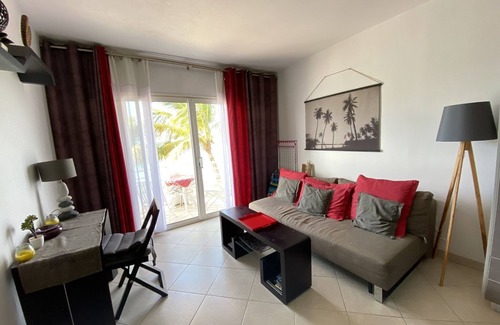 The air-conditioned apartment is equipped with a kitchenette with ceramic hob, microwave grill, washing machine, fridge freezer, Nespresso coffee machine, toaster, kettle, 80 cm flat screen TV, wireless Internet, TNT and Orange TV, Blue Ray DVD player, beach chairs, bed linen, table linen, towels and beach towels provided, hairdryer, 160X200 bed, very comfortable 160X200 sofa bed, iron and ironing board, vacuum cleaner, many storage cupboards.