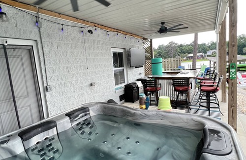 Unwind viewing amazing sunsets from the deck, covered outdoor bar area, firepit, dock or even the hot tub!