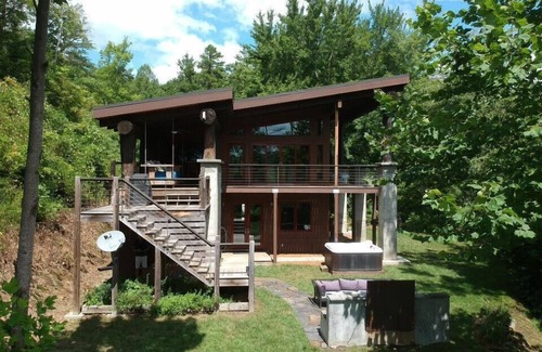 Watershed 03 - Free Train Tours + Custom Modern Luxury Cabin + Beautiful Sunset is located in Bryson City. Watershed 03 - Free Train Tours + Custom Modern Luxury Cabin + Beautiful Sunset provides accommodation, featuring Laundry, TV, Spa, among other amenities. This Cabin features Laundry, TV, Spa, to make your stay a comfortable one.