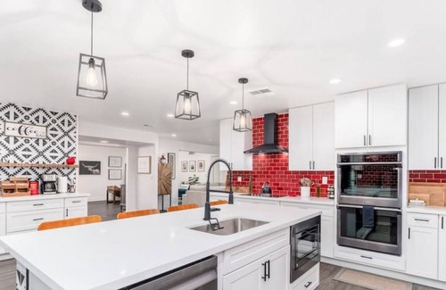 As you enter the resort backyard waterslide oasis take a deep breath as you scan your surroundings and realize you have arrived at your ultimate dream vacation. You’ll find ample seating areas that are the perfect place to sit back and relish in the striking desert sunsets Prepare to be captivated by the array of entertainment options available at Waterslide Villa. Step outside into the expansive backyard and discover your personal oasis. Take a refreshing dip in the private pool, unwind or wind up on the riptide waterslide, or challenge friends and family to a friendly game on the putting green. The al fresco outdoor lounge set seats 10 for those who want to enjoy the sunset with cocktail in hand and great company on either side. Looking to experience your inner kid? Cozy up around the outdoor gas fire pit, grab your marshmallows, chocolate and graham crackers to create the ultimate s'mores! Impress your friends by serving creamy peanut butter cups instead of chocolate bars for a sophisticated twist on a classic dessert! Additionally, indulge in the ultimate gaming experience in the game room. Enjoy a thrilling game of pool or showcase your ping pong skills. The game room provides endless fun and entertainment for everyone.