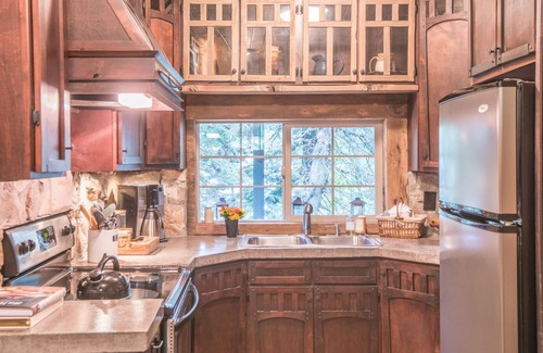 The enchantment of the Wee Cottage in the Woods will have a lasting memory for anyone who experiences it. The design and setting may be unlike anything you've ever experienced before. It's no more than 750 square feet of cozy perfection. Outdoor living is just as inspiring and enjoyable as all of the indoor space. If privacy and seclusion are the priority then no need to search any further. Watch the stream from either of the two decks, take a nap in the hammock and cuddle up to a wood burning fire in the living room any season of the year.
