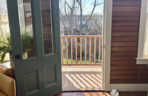Newly restored, cozy, strikingly designed South Tiverton cottage with peekaboo water views. Wood stove, clawfoot soaking tub, and central air are among the homes many amenities. We can't wait to welcome you to Holiday House.