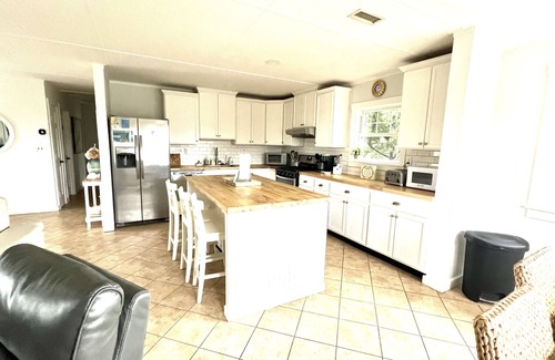 KITCHEN: a full functioning kitchen stocked with utensils and cookware for the best of chefs, it also includes crockpots, an Airfryer, toaster, blender, coffee pots, electric skillet, microwave, and more!
