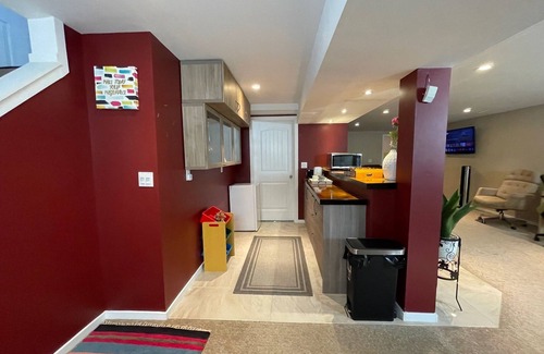 Welcome to this Spacious, cozy suite near West Edmonton Mall, perfect for families or solo travelers. The suite features a king bed with attached bath, queen bed in the living area, and a 55” smart TV with Netflix. Includes an office space and exercise area. The kitchenette has a microwave, coffee maker, and hotpot (no stove). Private entrance and guest parking. Located near major attractions, bus stops, and a sports center. Clean, quiet, and perfect for a relaxing stay!