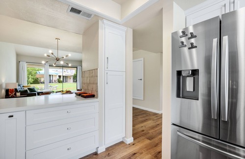 Grand Bahama is located in a quiet condo community in the highly desirable South Palm Springs. This updated condo offers everything needed for a comfortable stay (minimum 30 days). You'll feel right at home in this beautiful space. Kick off your shoes and relax in midcentury modern style. Gaze at the beautiful views of Mt. San Jacinto while you sip coffee on the patio or the couch. Go for a dip in the heated pool or jacuzzi, play a relaxed game of tennis or pickle ball at the tennis courts.
