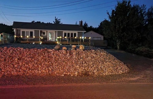 Nestled in the Harbour this tastefully furnished home boasts spectacular all season Ocean front views from the living room,dining room,office & master bedroom.The extra large deck overlooks the harbour which opens up to the community dock across the street.Close to hiking , biking & ATV trails.PerchanceTheatre and the Shipwrecks are 3 min walking distance. 30 min from Bay Roberts & 40 from St. Johns.