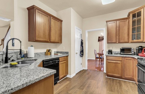 Welcome to your home away from home! Enjoy a seamless check-in with our convenient keypad entry. Inside, you'll find cozy beds with fresh linens, clean towels, and essential bathroom amenities ready for your arrival. The fully equipped kitchen includes a refrigerator, range, microwave, Keurig, dishwasher, and all the cookware and utensils you'll need.