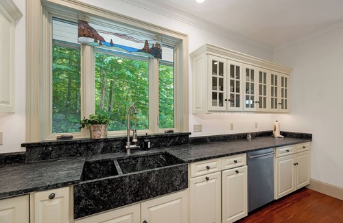 Down by the private waterfront, discover 300 feet of exclusive lakefront, featuring a charming cabin equipped with electricity, a fridge, and cozy seating (No running water). The lake property also boasts 4 paddleboards, two individual kayaks, one double kayak, and a canoe. Additionally, three docks and a swim platform await your enjoyment, alongside a boat slip available for rent (23 feet max). Savor delectable meals prepared in the gourmet kitchen, outfitted with top-of-the-line appliances and outdoor grilling options. For a serene lakeside experience, venture to the rustic cottage by the water's edge. Complete with electricity, a fridge, and comfortable seating, it provides the perfect setting to unwind and soak in the tranquility of the lake.
