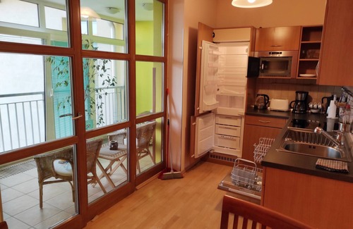 The main square of west Vinohrady is "Náměstí Míru" (Peace Square) with Prague 2 town hall, Vinohrady Theatre, Gothic Revival Saint Ludmila Church (Josef Mocker, 1892) and a station of A metro line. In the central part of Vinohrady near Vinohradská street, there lies "náměstí Jiřího z Poděbrad" (George of Poděbrady Square) with a modern "Church of the Most Sacred Heart of Our Lord" by Jože Plečnik built in 1932. There are several parks in Vinohrady. Havlíčkovy sady (literally Havlíček's Orchards) is the Prague's second-largest park. There is Villa Gröbe that served as summer house of the nobility, it is inspired by Italian Renaissance suburban villas and is surrounded by vineyards still in production founded by Charles IV in the second half of the 14th century. Vineyards and Vineyard summerhouse were at the end of the 20th century started to deteriorate, but were renewed and now has an area of 1.7 hectares and annually produces 4,000 liters of wine. There are grown varieties of Müller Thurgau, Rhine Riesling, Dornfelder, Pinot Gris and Pinot Noir, and since 1997 there annually happen "Vinohrady vintage celebrations" (usually in September). In the north-west part of Vinohrady, near Italská street, there is Riegrovy sady (Rieger's Orchards) with Vinohrady Sokol House and a large outdoor restaurant. Folimanka Park is situated at the Vinohrady side of Nusle Valley under large Nusle Bridge. Smaller parks are situated in central Vinohrady: sady Svatopluka Čecha (Svatopluk Čech's Orchards) near Vinohradská street, Bezručovy sady (Petr Bezruč's Orchards) between Slezská and Francouzská street) and parks at all main Vinohrady squares. Very good location in a residential area in the centre of Prague with quick and excellent access to everywhere.