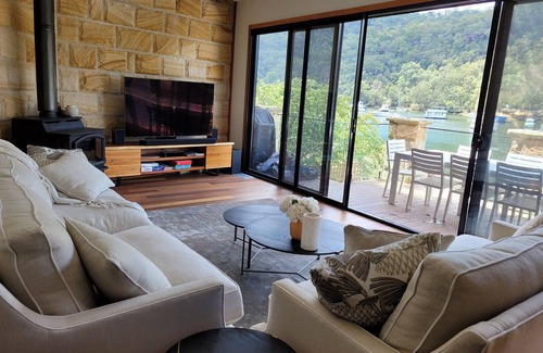 Wenora, Berowra Waters is a beautifully decorated three bedroom, 1.5 bathroom with spa bath property right down on the water. It offers stunning water views from the bedrooms and living areas. It has a large family room with combustion fireplace making it an ideal area during winter plus a separate parents retreat with TV and a small combustion fireplace. The property has a large dining area plus an outdoor area perfect for al fresco dining and complete with chairs table and BBQ.