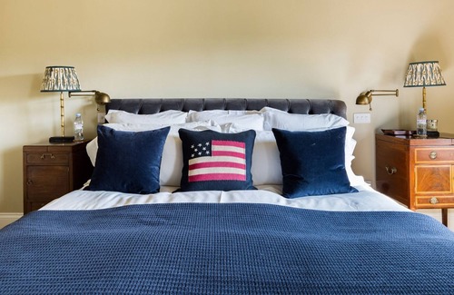 This impressive country home comprises a 17th-century farmhouse and outbuildings that have been converted into a super-stylish retreat. An ideal escape to the country, you'll be surrounded by fields and have a private garden where you can relax and enjoy the views. Inside, there are cosy farmhouse touches including an Aga and an open fireplace, while boutique hotel-style additions include a freestanding copper bath. There's even a gym, should you wish to keep up with your daily workout. If you can bear to tear yourself away, there are country walks from the door and the house is well located for exploring the towns and villages of The Chilterns.