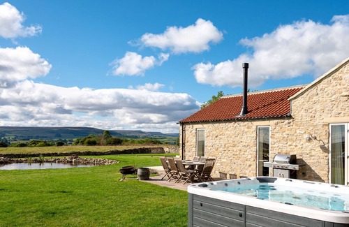 Walking through the doors, you are met with wow-factor. Boasting a bubbling hot tub, outdoor fire put and stunning views, you won't want to leave in a hurry. Inside features chic interiors and rustic features, a perfect kitchen for entertaining, and a roaring log burner for cooler months. With five uniquely designed en-suite bedrooms, West Grange offers everyone getting together their own space, and the house can be combined with the neighbouring Bearskin Cottage to include two more guests. Nearby is the North Yorkshire market town Leyburn, where you will find all you need for amenities, and not far away are Middleham, Richmond and the whole of the Yorkshire Dales to explore.