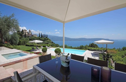 Located on the hill on the western shore of Lake Garda, in a wonderful setting for unforgettable holidays and stays, this villa is an elegant and exclusive residence that will envelop you in the greenery of its olive grove. From up here you can enjoy a truly incomparable panorama.