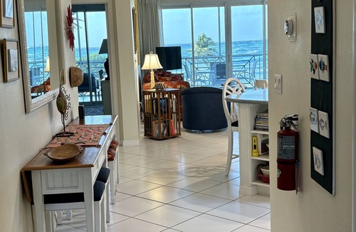 The views from this top floor condominium are absolutely stunning, looking straight out to the turquoise Caribbean water. Uniquely easy access to the unit is just 15 steps from the driveway to a detached, outside elevator, then only 20 steps to the front door. Stair access is also just around the corner from the condominium.