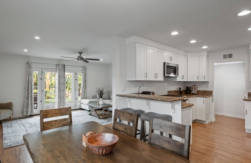 A rare find! This pet-friendly, remodeled Oceanside home features a game room with a ping pong table, dartboard, board games, and two bikes. Thoughtfully organized with all the essentials needed for your medium-term stay! Equipped with a pack-n-play and high-chair for children 3 or younger. Indoor and outdoor dining space for 6. String lights hung outside. A large sectional and TV in the living room for some timely R&R. Located about 0.5 mile from a bike trail that leads to Oceanside`s world-class beach! Book your stay today!