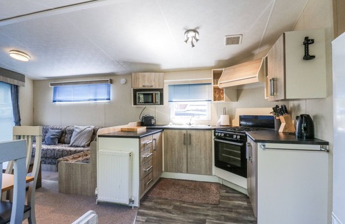 White Hart Caravan, a single-storey lovely static caravan, consists of a kitchen with microwave, kettle, gas hob, fridge/freezer, and oven, a dining room with dining seating, and a sitting room with TV and electric fire. The bedrooms consist of a double with en-suite and single. There is a shower room with walk-in shower, basin, and WC. WiFi, fuel, power, bed linen, and towels are included in the rent. Outside, there is a front gravelled area with picnic bench and off-road parking available. Pet-friendly. Sorry, no smoking. Wherever your exploration takes you, enjoy all this with a stay at White Hart Caravan. Good House keeping bond of £100