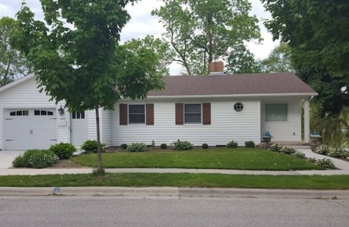 A mix of vintage charm & contemporary/clean with leather couches, hardwood & tile floors. This is a 2 bedroom (king & queen) ranch with a recreational room/"3rd" bedroom (queen, modern futon, & other options) in the walkout basement to the Mill Pond. It is in walking distance of downtown Plymouth, Aquatic Center & County Fair Grounds (summer races/Sept. County Fair). It is close to Road America/Elkhart Lake, Kohler, Bookworm Gardens/Sheboygan, golf courses, Kettle Moraine, Sheboygan Marsh & much more.