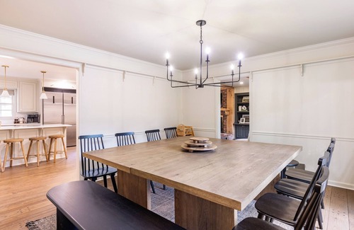 Immerse yourself in this revitalized 7-bedroom cozy cottage just outside Atlanta. This retreat offers a serene, resort-like experience, ideal for families and large groups seeking to escape the city's hustle and bustle. Lounge by the vast private pool, rejuvenate in the wood barrel sauna, or compete over ping pong and nostalgic arcade games. With activities for all ages, this cottage ensures an unforgettable stay for everyone.