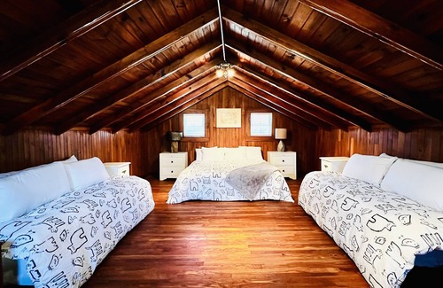 This solid, country structure was originally built in 1820 and is located on a 35 acre inviting and relaxing forest. The cabin is pet friendly has been updated with new interior and fully equipped modern kitchen, and a large Bathroom. The bedroom provides a King sized bed and two Twin size bed. The cabin also includes a den with a cozy fireplace, a big screen TV, Wi-Fi, two large sofa, air conditioning and a dining area. It is perfect for family of 4. The first floor has an living room area with fireplace, Kitchen, dining table and a large bathroom and an upstairs bedroom which provides a sleeping areas for up to 4 other guests or children. This is the perfect place to recharge your physical, mental and emotional battery. We hope to see you soon.